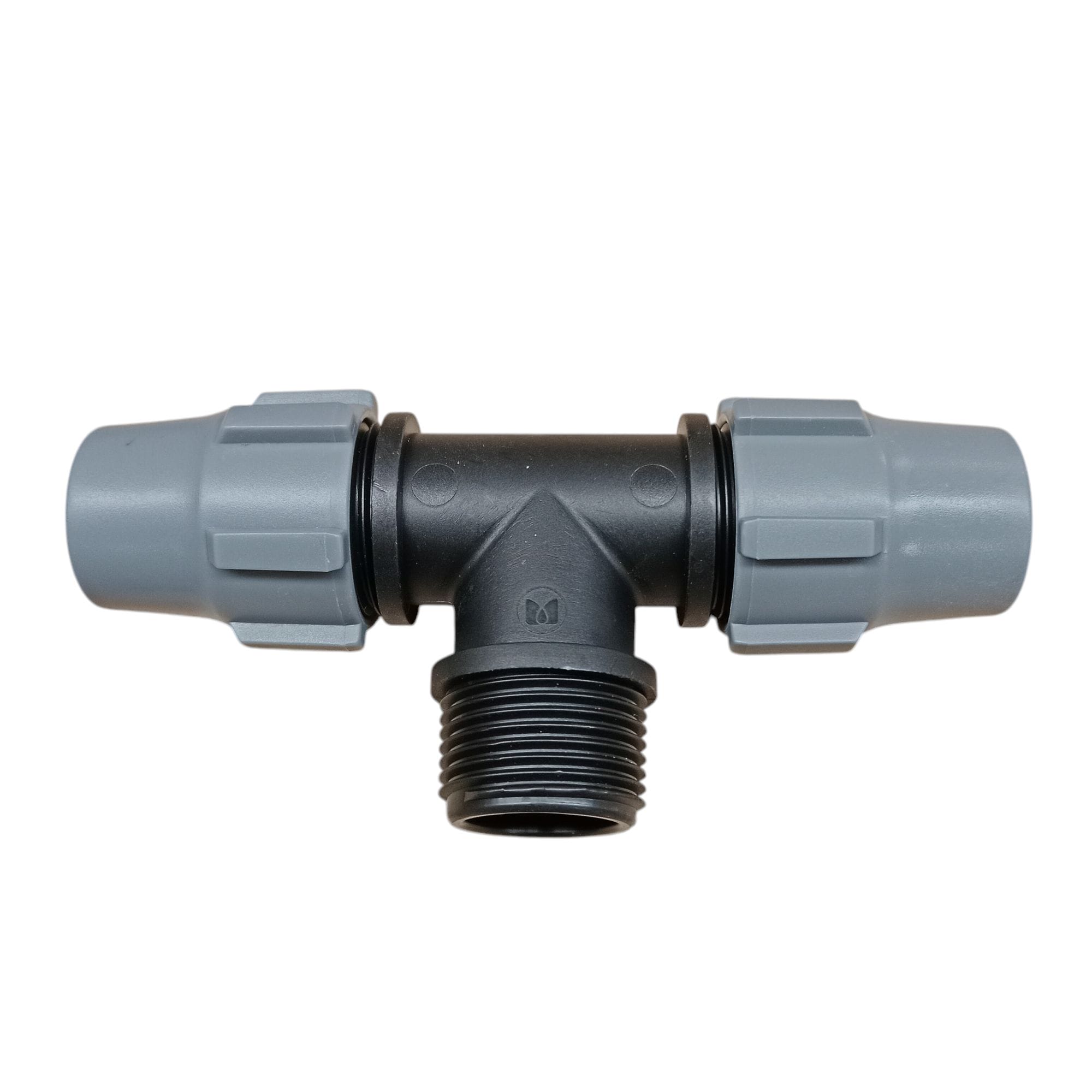 Conector en T para manguera de 20 mm y rosca. Esta pieza está diseñada para crear una división segura en sistemas de riego, permitiendo la conexión de tres mangueras. Proporciona una conexión confiable y duradera entre componentes roscados y mangueras de 20 mm, asegurando un flujo eficiente y estable del agua en la instalación.
